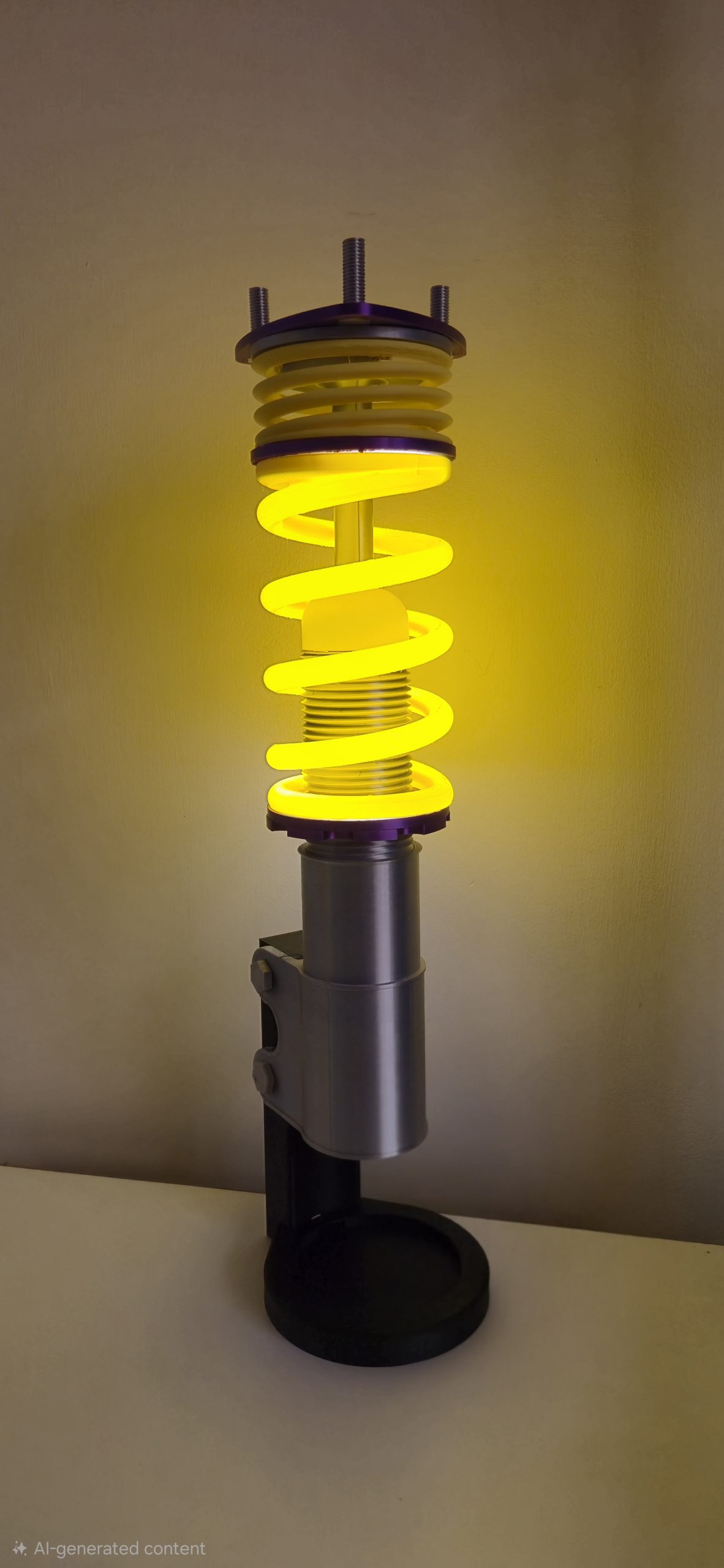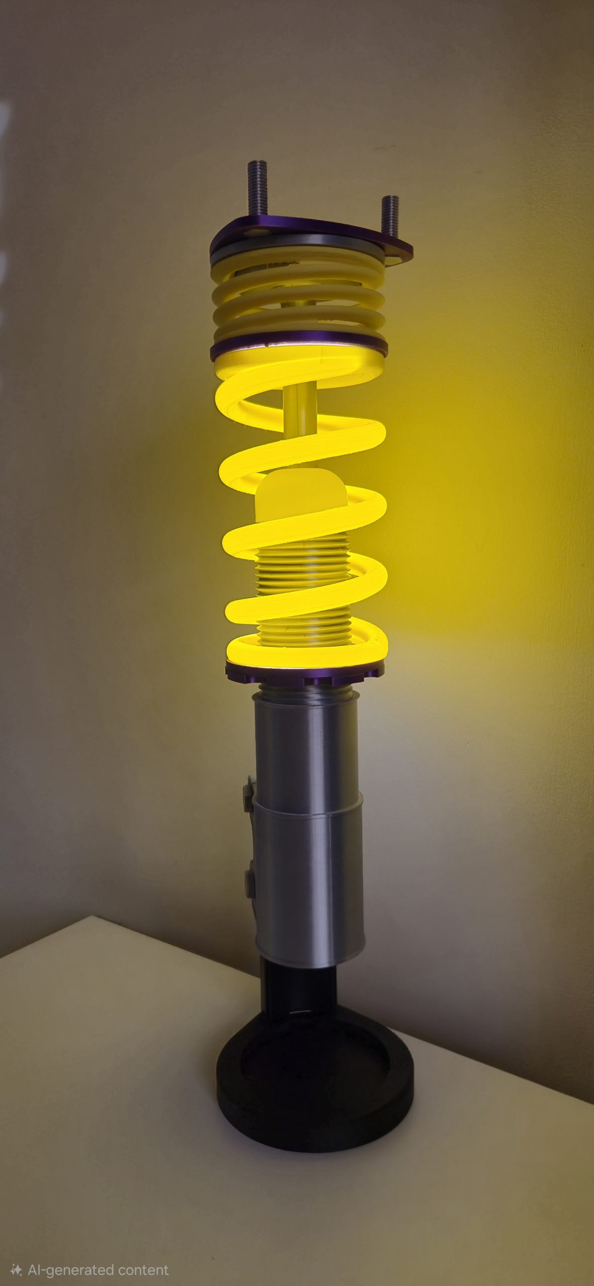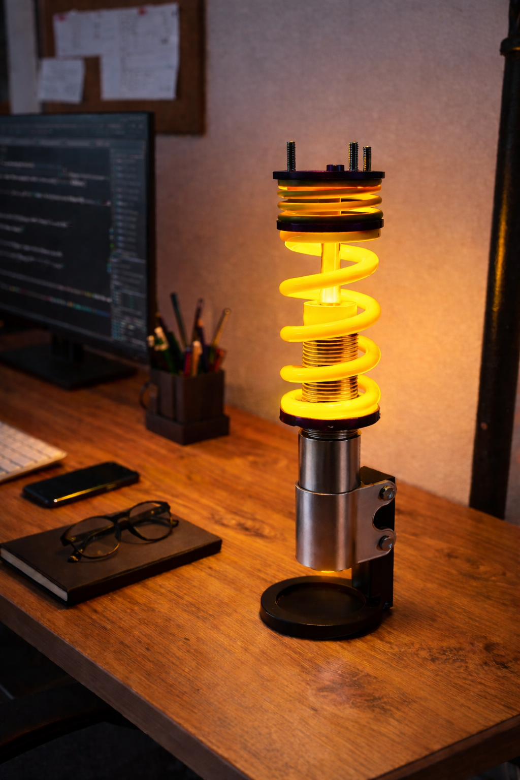 Level up your office, garage, or man cave with this custom-made 3D Printed Coilover LED Lamp.