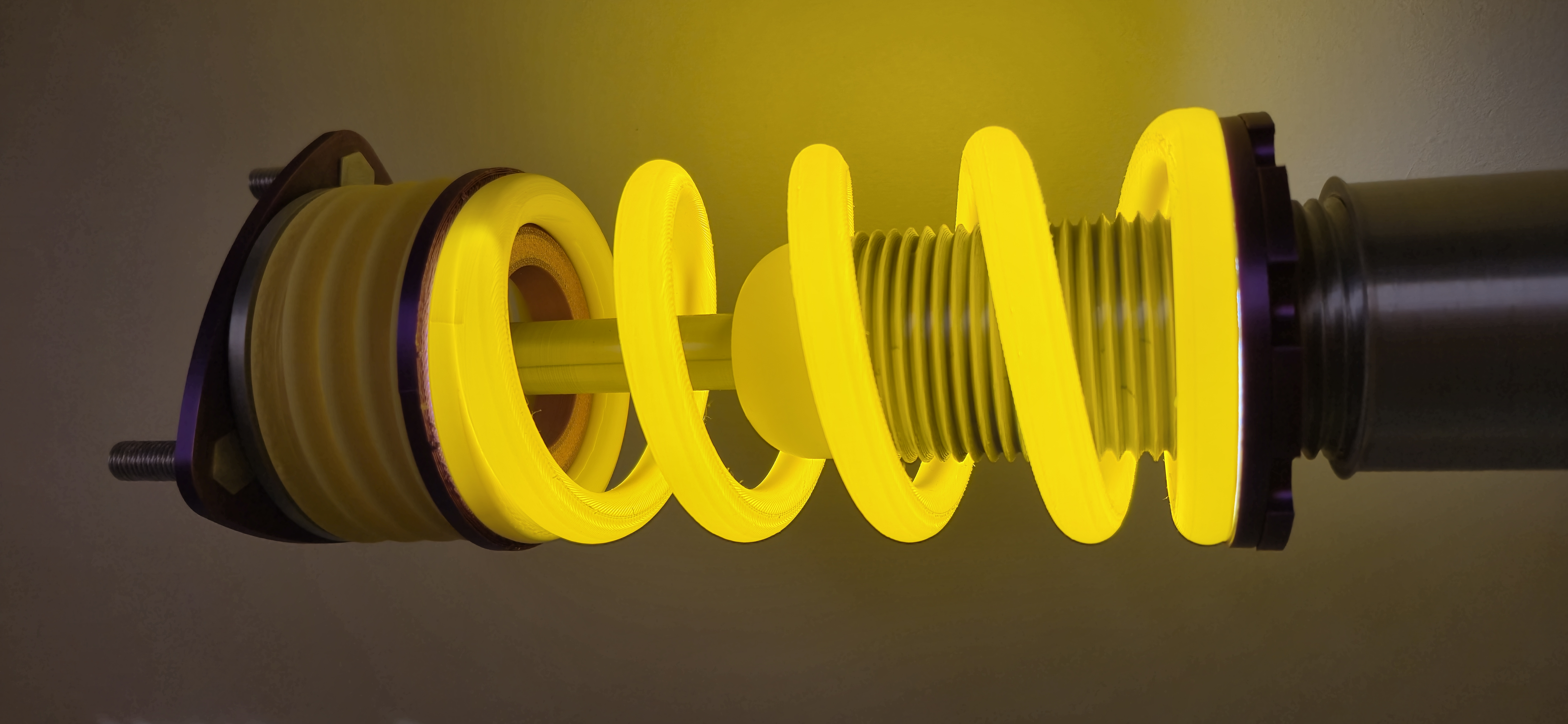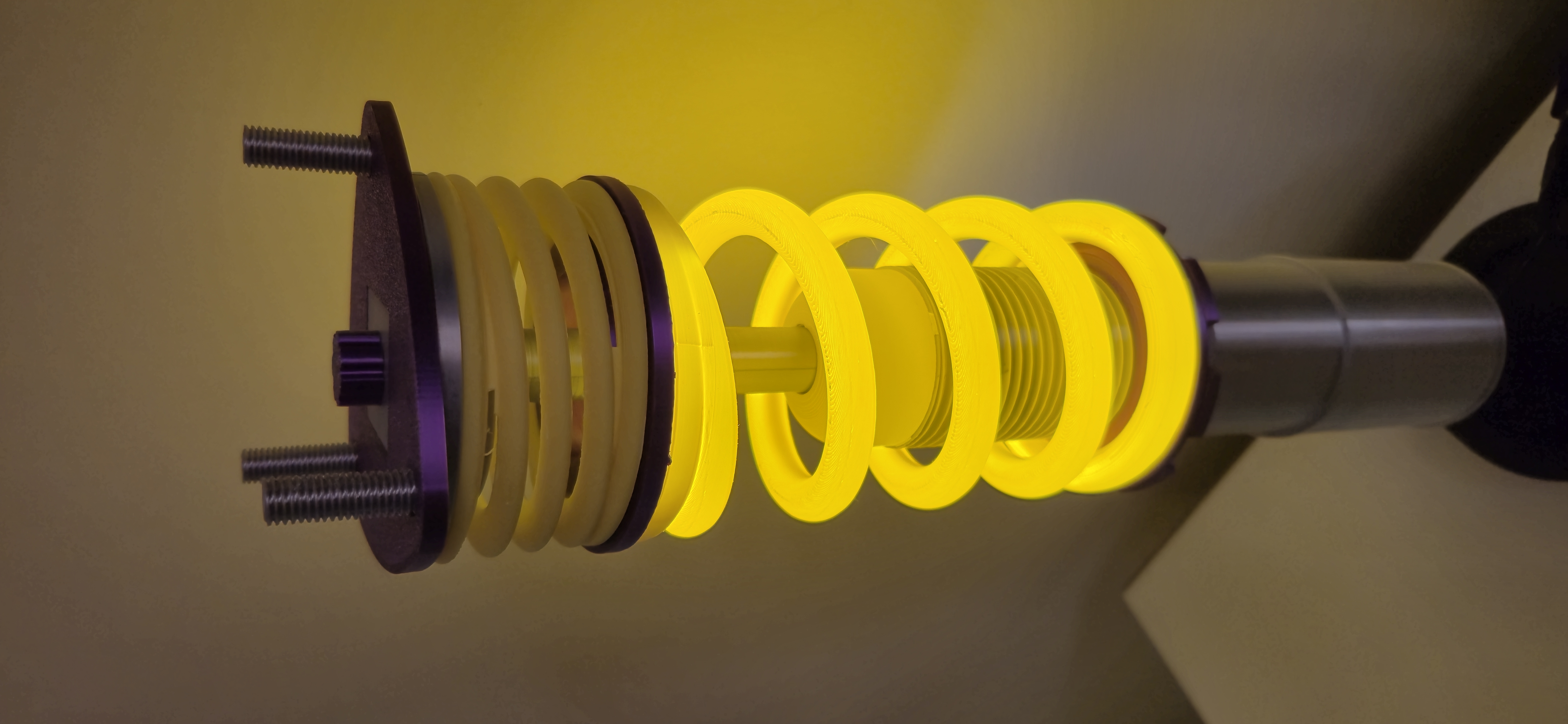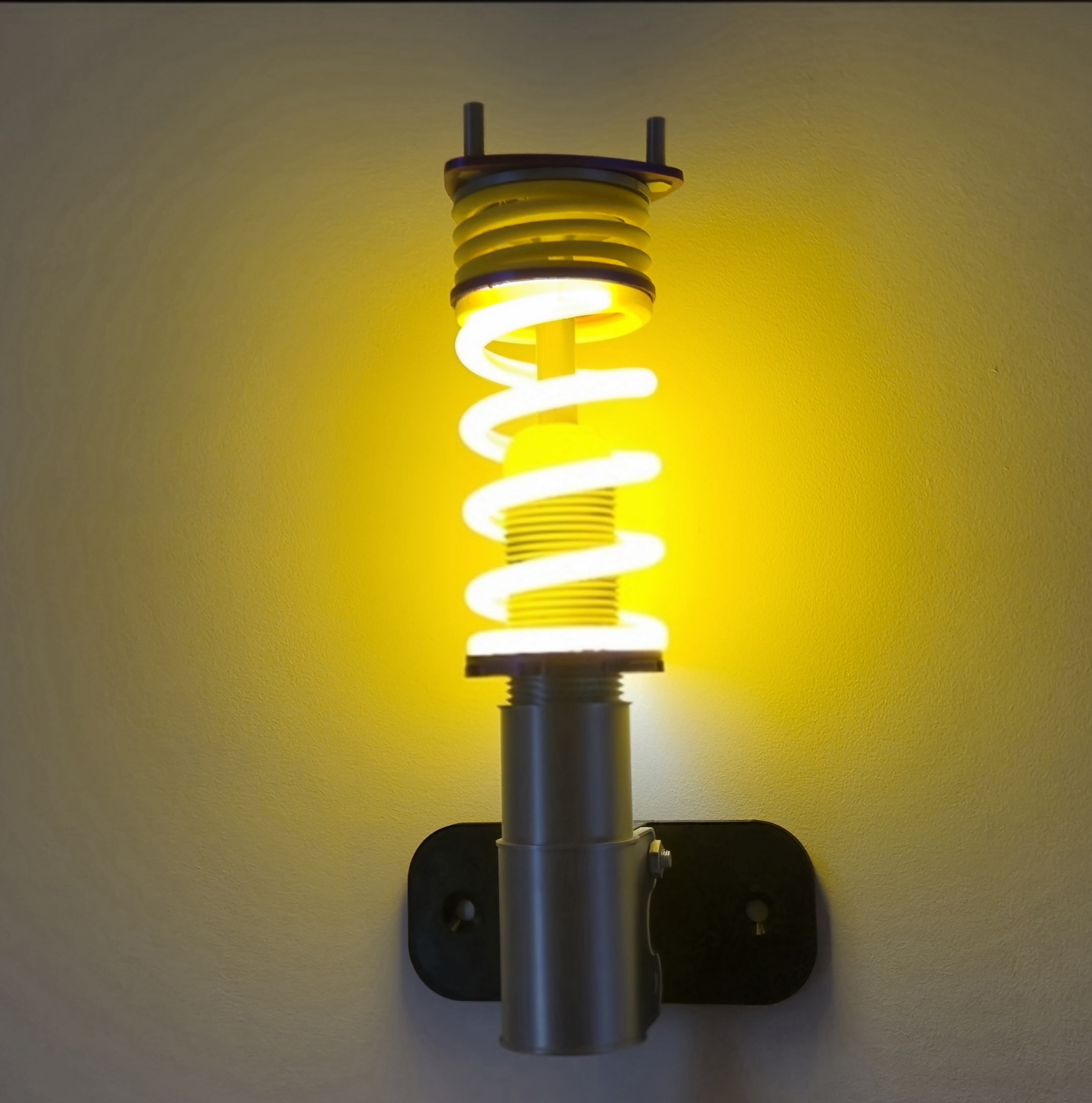 Level up your office, garage, or man cave with this custom-made 3D Printed Coilover LED Lamp.
